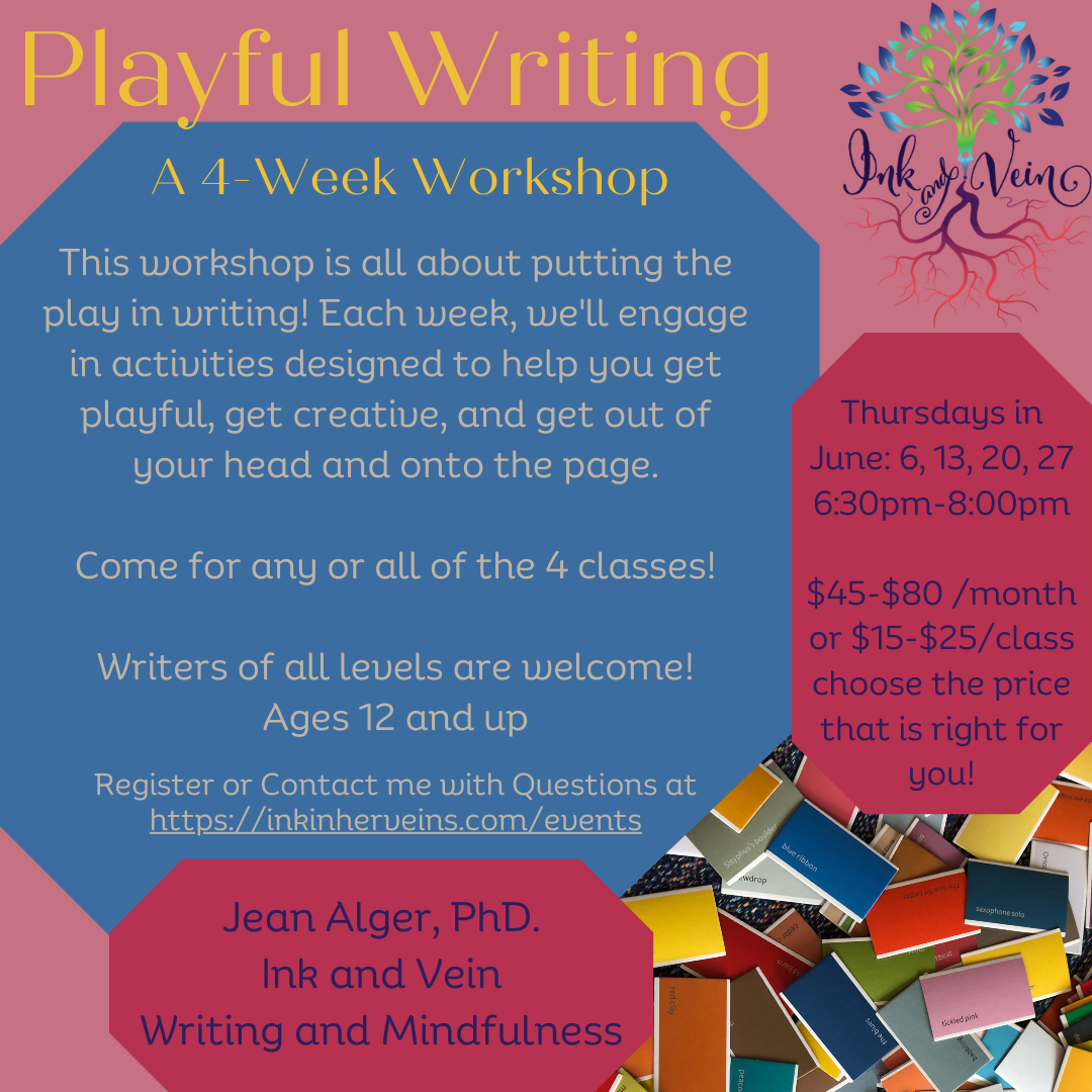 Writers of all levels are welcome! Whether you are an experienced writer or a novice, it is easy to get stuck in our heads, stuck in the intellectual aspects of writing, and to forget about the joy of wordplay and the fun of experimenting. This workshop is set up to get you out of your head and into the fun. This workshop will be best for writers aged 12 and up.
