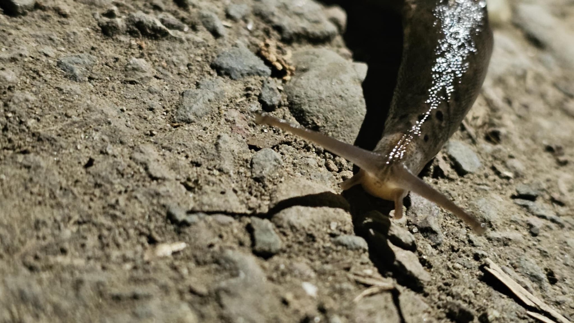 And then we started to see them. Slender, glistening bodies reflecting our flashlights back to us. First, just one little dark-bodied slug inching its way along the path. Then another, and another.