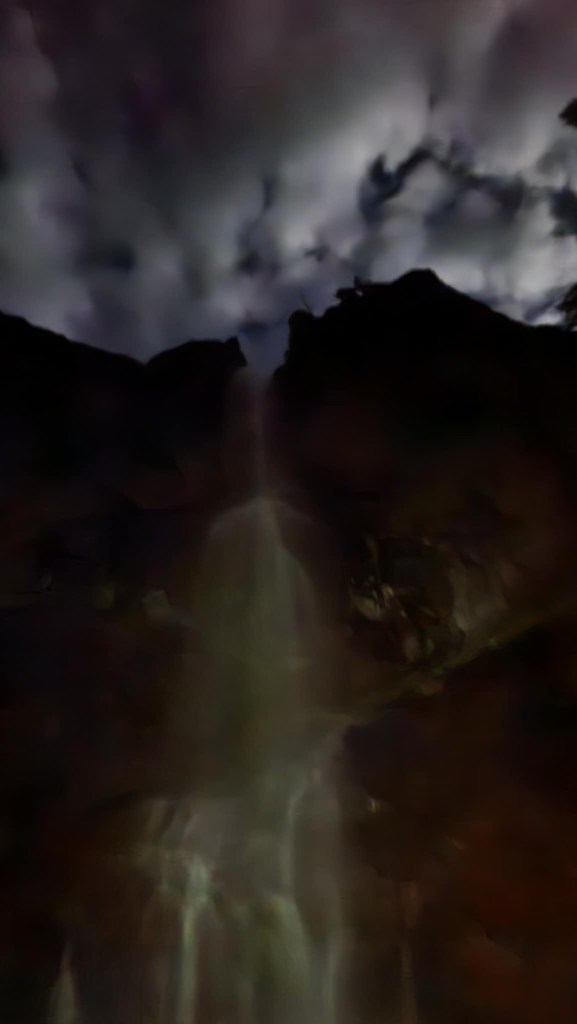 When we reached the waterfall, the moon broke through the clouds a little, though she stayed mostly obscured. Soon, she went past the railing and got near the water, and the rest of us followed, me pushing my anxiety down and answering the call of the water and ignoring the call of rules.